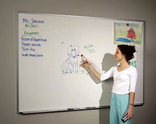 Anodized aluminum slime-profile trim Trim accented with gray plastic corner caps Low-gloss surface offers greater contrast for markers Porcelain steel surface Doubles as a magnetic bulletin board Black plastic end caps on the accessory tray eliminate sharp corners Offers superior writability, erasability, and color contrast 50 year manufacturer guarantee